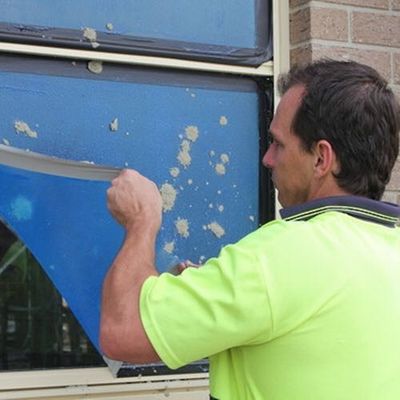 ป้องกันกระจกหน้าต่างกระจกหน้ากระจกและแผ่นกระจกในระหว่างการก่อสร้างการติดตั้งการทาสีการใช้ปูนปั้นพื้นผิว