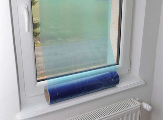 ฟิล์มป้องกันพลาสติกปลอดสารตกค้างกระจกหน้าต่างทนเทปป้องกันสกปรก