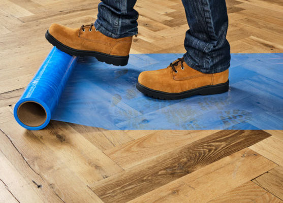 ฟิล์มป้องกันพื้นชั่วคราว 600 มม. X 100 ม. ฝาครอบพลาสติกกาวตนเอง